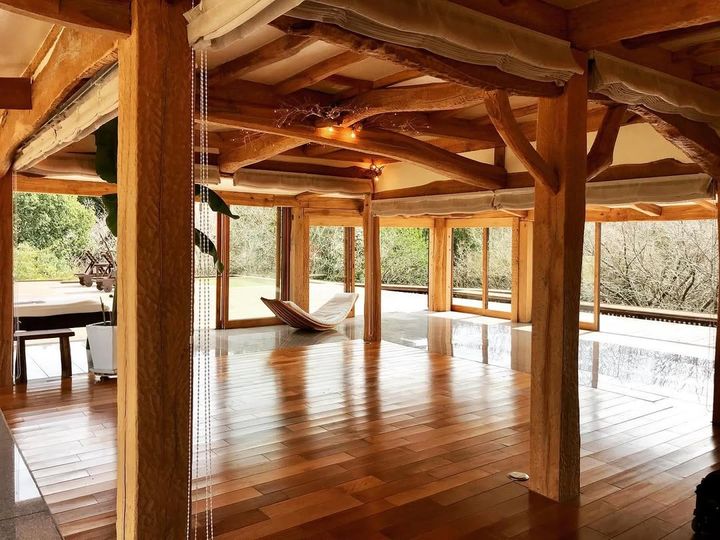 木のぬくもりを生かした室内は、周囲の景色に溶け込むよう設計され、リビングの一部が外と緩やかにつながる。壁の代わりに広がる大きな開口部から自然を全身で受け止め、まるで空に浮いているような感覚に。遮るもののない環境で過ごす時間は、身体感覚を強く、そして静かに揺さぶる体験となるはず。