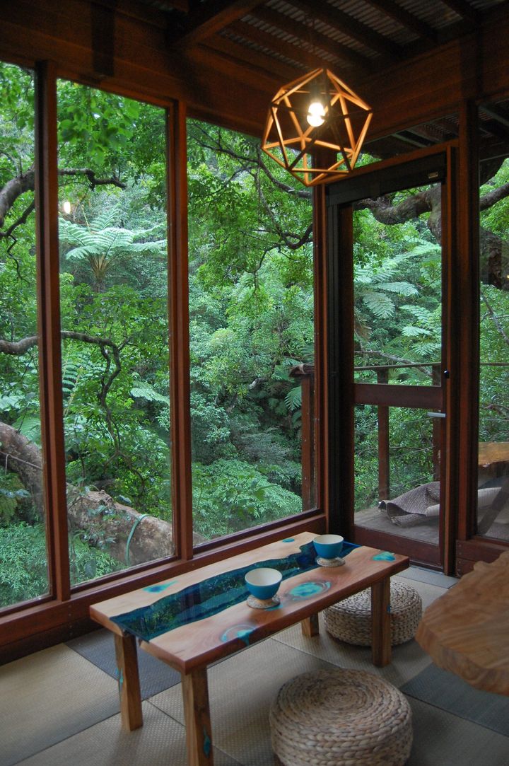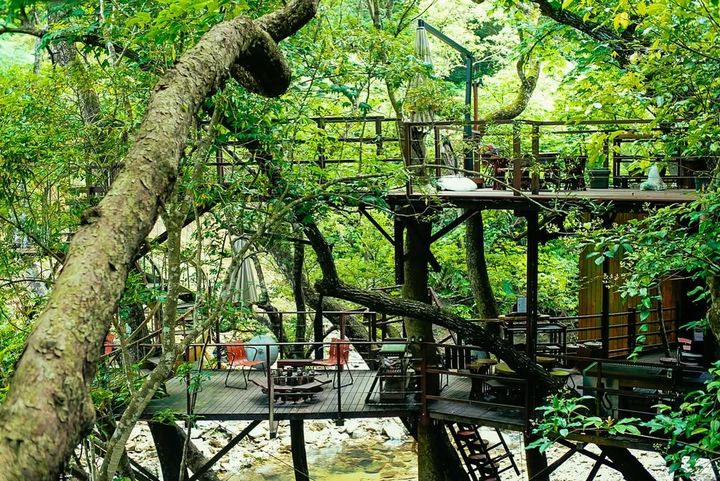 沖縄県名護市にある「ツリーフル ツリーハウス」は世界自然遺産、やんばるの森と一体化した日本唯一のツリーハウスリゾート。地上約10mに浮かぶ樹上の家は、360度ジャングルに囲まれ、非日常を体感できる空間だ。建築家の隈研吾もこの地を訪れ、「森の中に溶けるように存在していて、本当に夢の世界」と高く評価している。