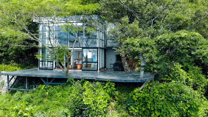 半世紀もの間放置されていた邸宅は、一棟貸しのヴィラにリノベーションされ、当時のモダンな意匠が残したままヴィンテージの風格が宿る。三面が全面ガラス張りとなっているため、室内に足を踏み入れた瞬間、床がそのまま海へ続くかのような錯覚に陥るだろう。