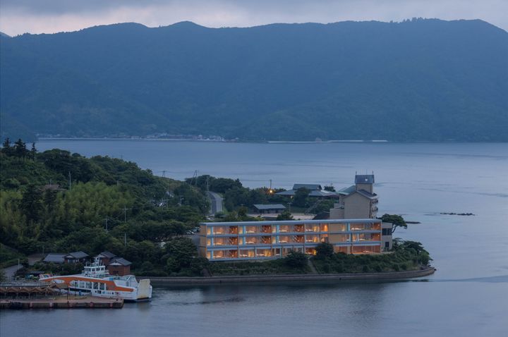 世界的に価値のある地質遺産を保全する「ユネスコ世界ジオパーク」に認定された隠岐諸島・海士町に、2021年に誕生した「エントウ」。約600万年前の火山活動が刻んだカルデラ地形と断崖の中、その風景の一部として佇むホテルは、地球のスケールを体感させるロケーションが際立つ。