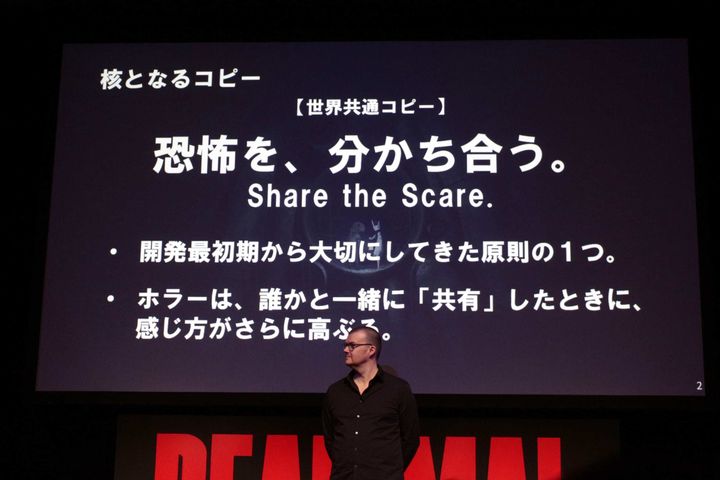 David氏は本作のキーワードを「Share the Scare(恐怖を共有する)」と説明。「ホラーは誰かと体験したとき、まったく違うものになる」。