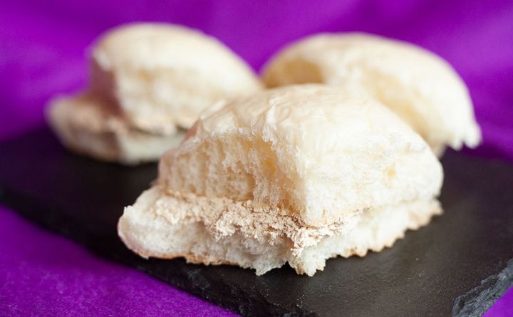 商品名のとおり、白いちぎりパンなのですが、まさかのコラボ商品だったようで……。生地の間には「明治おいしいミルクコーヒー」を使用したホイップがサンドされているのだとか。