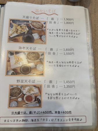 大盛は,蕎麦音+500円 薮+450円 田舎+400円