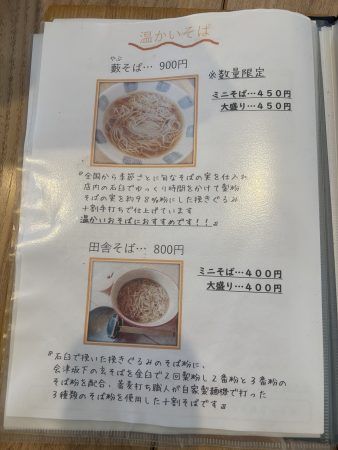 数量限定 ミニそば 450円 大盛 450円