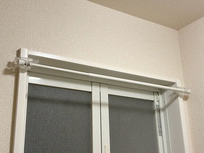 つっぱり棒が斜めになる場合は、どちらかの『縦にも横にもはさめるかもいフック』を調整し、床と平行になるようにしましょう。