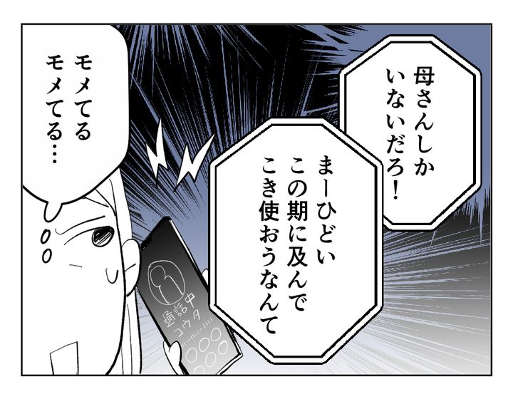 義母と義兄のケンカ、聞いているだけで耐え続けていた義姉が可哀想になってきます。義母の「嫁任せ」に夫の「妻任せ」、それに対する対価もなければ感謝もない。これでは出ていって当然、イツキさんの「自業自得」という言葉がすごくしっくりきます。