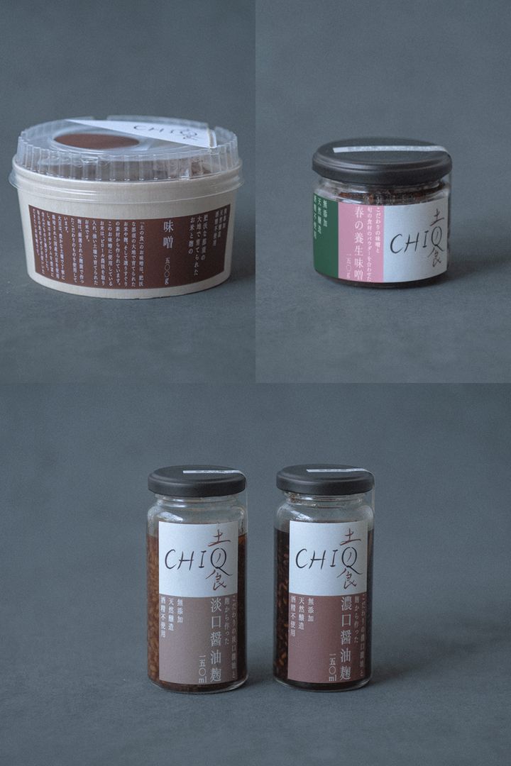 「土の食 味噌」(写真左上)には、那須で育てられた米を使用。麹は厳選した麹菌と国産大豆で仕込んでいる。味の要となる塩は、カルシウムを豊富に含むものを選び、素材の滋味を引き立てる味わいに仕上げた。さらに、パウダー状の「土の食 養生味噌」(写真右上)も展開。お湯を注ぐだけで手軽に味噌汁が作れるほか、炒め物などに加えるなど調味料として幅広く活用できるのもうれしいポイントだ。