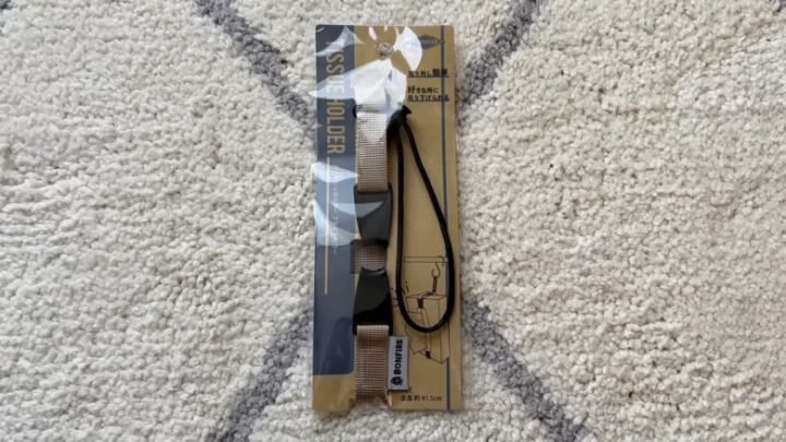 ドロストで長さを調整できるので、さまざまなサイズの箱に取りつけられます。両端の黒いフックを箱ティッシュの開け口に引っ掛けると、準備OKです。