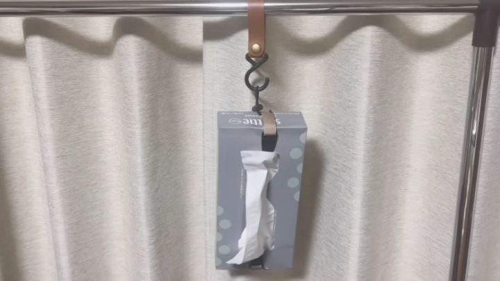 箱ティッシュを好きな場所に吊るせる便利なホルダーです。