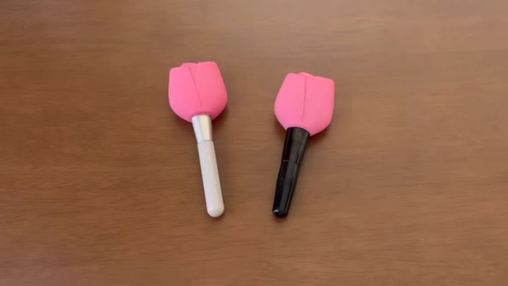 使い方はブラシの柄の先端をチューリップに差し込むだけ。メイクブラシを衛生的に持ち歩け、毛先の傷みや粉によるポーチの汚れも予防してくれます。見た目もかわいく、ポーチを開けるたびに気分も上がるはず!