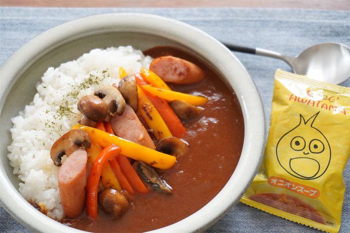 冷え込みが厳しい日のひとりランチ。でも、自分1人のために煮込み料理などを作るのは正直面倒…。そんな時、ストック棚の「AWATAMA(オニオンスープ)」と目が合いました。これ実は、飴色玉ねぎがギュッと凝縮したフリーズドライスープなので、時短調味料として使っても超優秀なんです!コスモス食品の公式レシピによれば、このスープを使うとレンチンで奥深い本格カレーが作れるのだとか。さっそくクッキングスタートです!