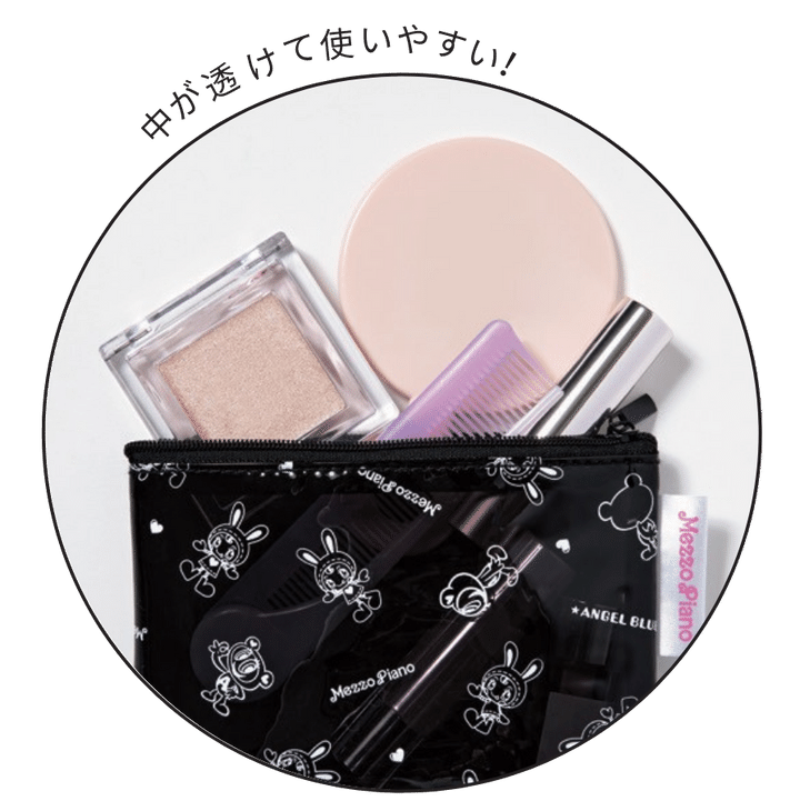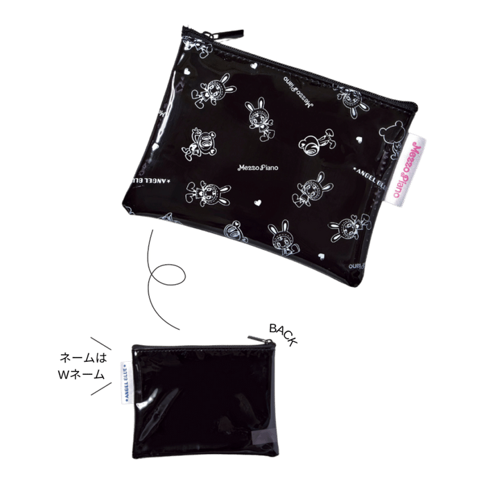 【クリアポーチ】ベリエちゃん&ナカムラくんのオリジナル柄ポーチは、あえてのブラックで大人も持ちやすいデザイン。小ぶりなサイズ感なので、ミニバッグの日のコスメポーチ、コインケースなどにもオススメ。