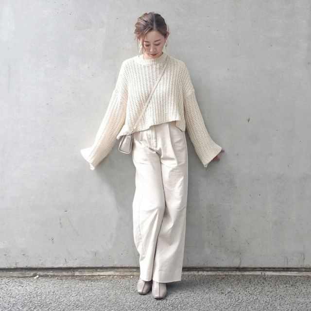 秋は全身白コーデがもっとも難しいシーズン。白い服が季節外れに見えないよう、アイテムを厳選しましょう。