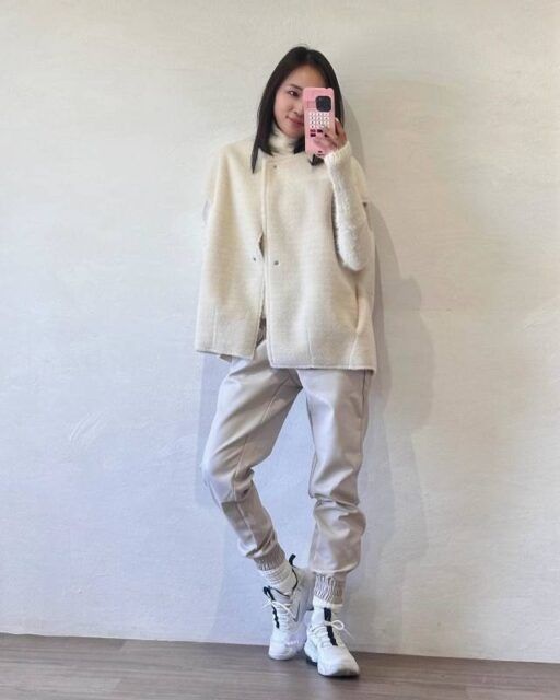 【秋の全身白コーデ2】ニット×スウェットパンツでスポーティに
