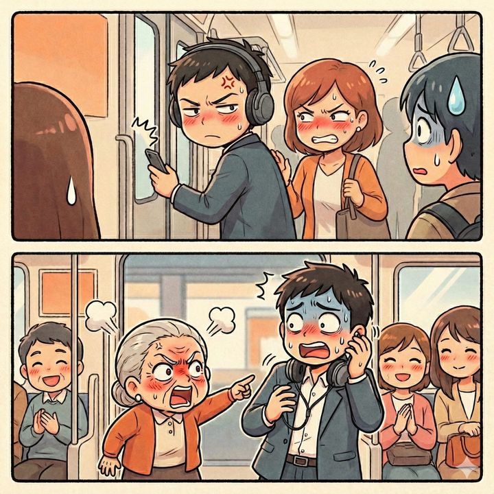 「なんすかじゃないわ!さっきから皆降りようとしてるのに、どきもせんと舌打ちして!イヤホンしてたら王様なんか?ええ加減にしなさい!」
