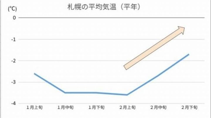 まず、平均気温の変化ですが、札幌では1月中旬から2月上旬にかけて最も低くなります。