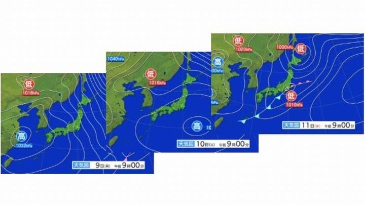 気圧配置は日替わりで、冬型の気圧配置→高気圧→低気圧と変化しています。