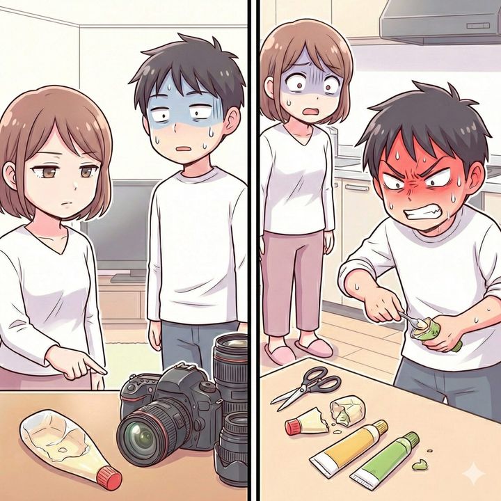 彼は迷わずゴミ箱に手を突っ込み、私が捨てたわさびやマヨネーズのチューブをすべて取り出し、ハサミを手に取り、チューブを真っ二つに切ったのです。