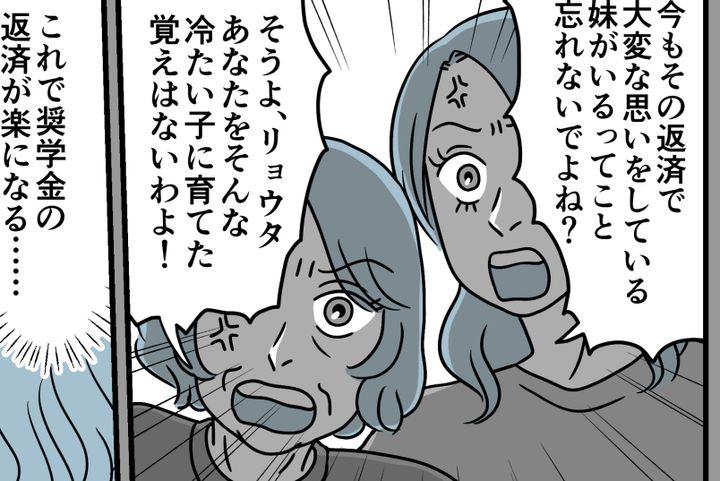 その事実を知った義母とモモさんが、「モモの奨学金も手伝うべきだ」とリョウタさんに迫ります。さらにモモさん本人からは、「自分だけ完済なんてズルい」と直接電話が入りました。