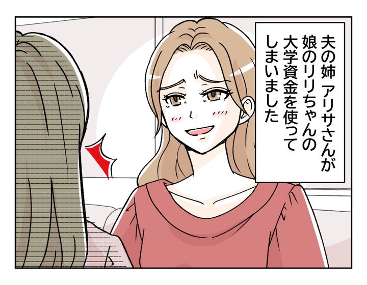 シホ(仮名)さんの義姉、アリサ(仮名)さんは、シングルマザーで娘リリ(仮名)さんがいます。なんと、アリサさんはリリさんの大学資金を使い込んでいたのです。その事実を知ったリリさんが、シホさんの夫アラタ(仮名)さんに泣きながら相談しました。