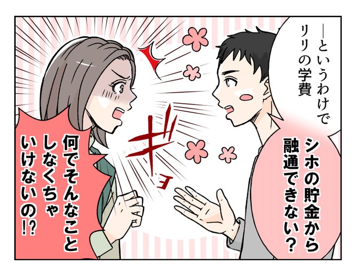シホさんにとってアリサさんは特別親しい存在ではありませんでした。それにもかかわらずアラタさんに「貯金から融通してほしい」と頼まれ、シホさんは我慢の限界を迎えます。