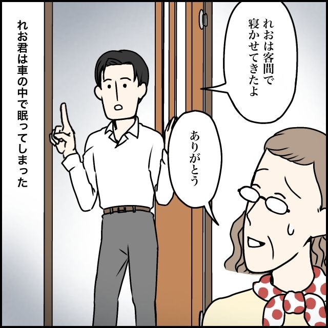 れおくんは泣き疲れたのか、車の中ですっかり眠ってしまいました。眠ったままのれおくんを太一がそっと抱き上げ、客間まで運んでくれました。「れおは客間で寝かせてきたよ」そう伝えると、義母は静かに「ありがとう」と頭を下げました。
