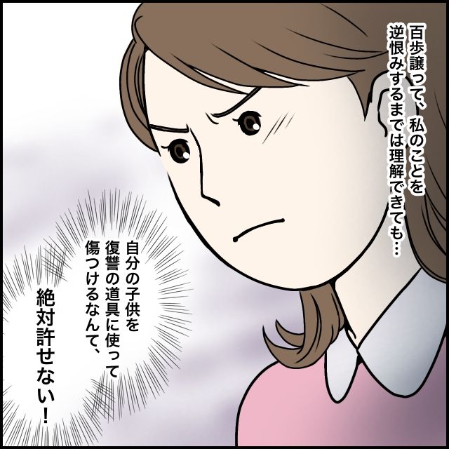 勇也さんとの不倫は完全に彼女の勘違いだけど、百歩譲って、私に逆恨みの感情を抱くところまではまだ理解できます。だけど、自分の子どもを復讐の道具に使って傷付けるなんて絶対許せない。私は玲美さんへ強い怒りを覚えたのでした。