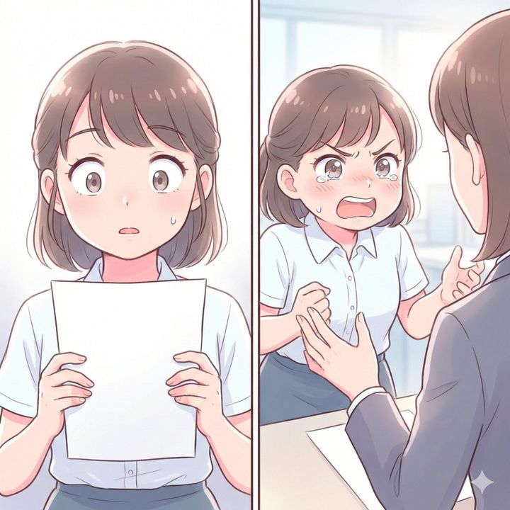 彼女は勢いよく資料をひったくりましたが、内容に目を落とした瞬間、言葉を失ったのです。
