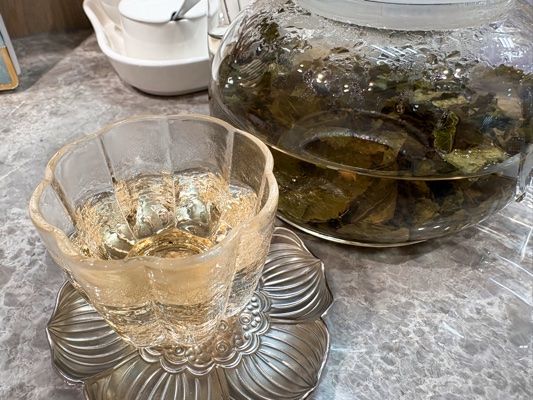 ティーポットたっぷり、なんとお湯継ぎ足し、3杯までOKとのこと(計4杯!)。私は2杯目でお腹いっぱいになってしまいました。二杯目でも、白桃の香りが保たれています!ほんのり、甘く、とてもいい香り!私はと~っても気に入り、今度家のお茶の在庫が少なくなったら、絶対に買おう!と思いました。これだけたっぷり飲めるのなら、このお値段でとてもお得!と思いました。
