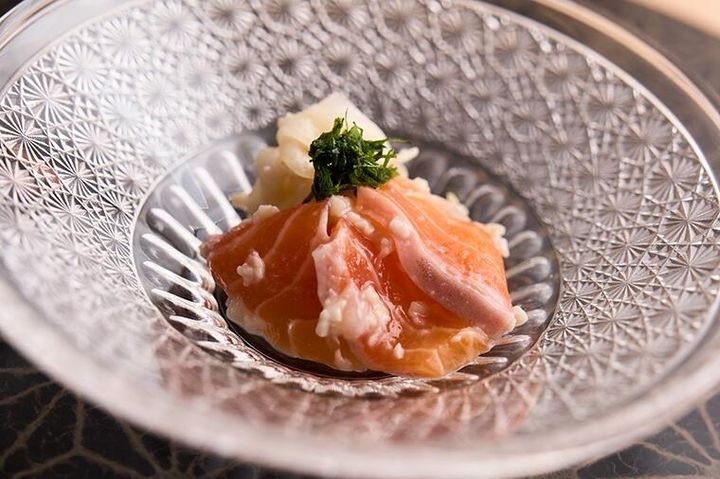 2026年日本酒dancyu「出会えてよかった!心ふるえる酒」特集では、人気酒場に家庭でもつくれる酒肴レシピを教えてもらいました。プロならではのセンスが光る料理ばかりで酒がますますおいしくなること間違いなし!盛り映えする料理が多いので、ゲストを招いた酒宴にもご活用ください。今回は、四谷三丁目「鎹(かすがい)」による「サーモンとオニオンの塩麹漬け」をご紹介します。