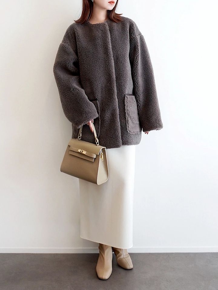 より防寒したいときには、上から大判のストールを巻いたり、オーバーサイズのコートを羽織って。暖かくなったらワンピースの上などに、サラッと肩がけして羽織るのもおすすめです。