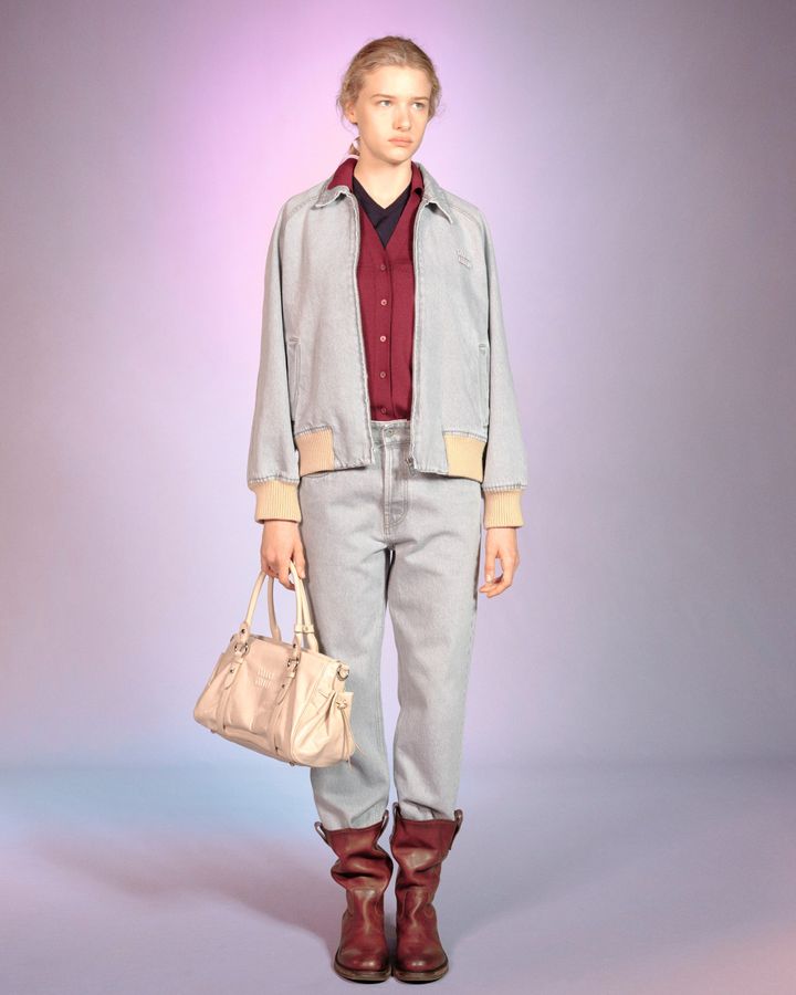 デニムジャケット¥627,000(ポップアップ先行発売) ブーツ¥335,500(共に予定価格)/共にミュウミュウ(ミュウミュウ クライアントサービス) Courtesy of Miu Miu
