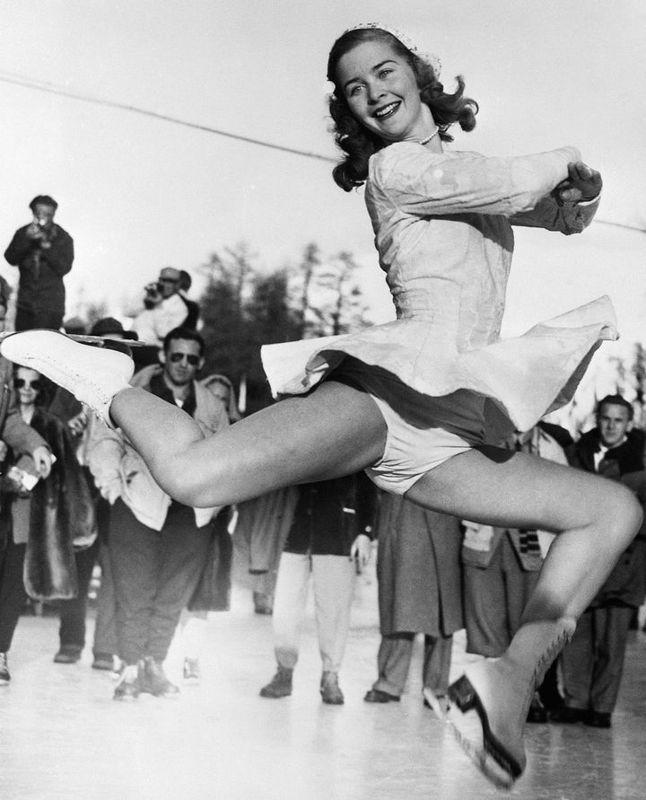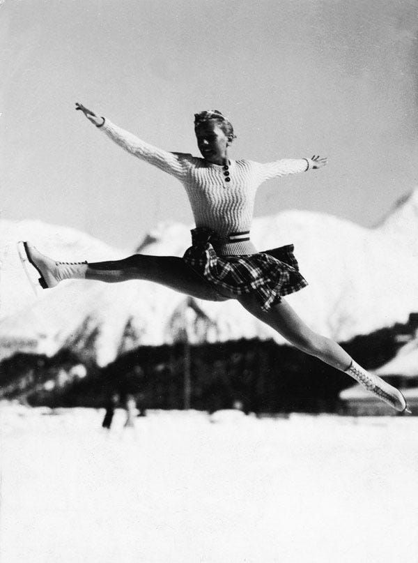 ドイツ出身のフィギュアスケーター、マキシ・ヘルバー選手は、1936年のオリンピックで着心地のよさそうなニットとチェック柄のスカートを合わせて競技に臨んだ。