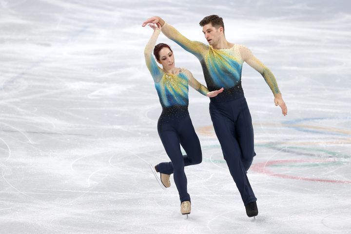 アメリカ代表のクリスティーナ・カレイラ選手&アンソニー・ポノマレンコ選手は、とびきりロマンティックなルックを披露。カレイラ選手のペールピンクの衣装は、流れるようなスカートと花びらのアクセントが氷上でよく映える。対するポノマレンコ選手は、オリーブグリーンのシャツに黒のパンツを合わせた。