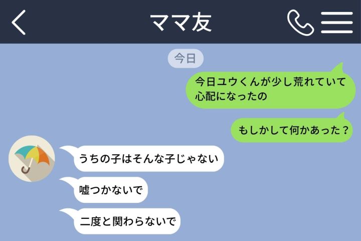 Aさんが迎えに来た後、私は悩んだ末にLINEを送りました。「今日、ユウくんが少し荒れていて心配になったの。もしかして何かあった?」できるだけ柔らかく書いたつもりでした。しかし返ってきたのは予想外の言葉。「うちの子はそんな子じゃない」「嘘つかないで」「二度と関わらないで」と一方的に責められ、そのままブロックされてしまいました。