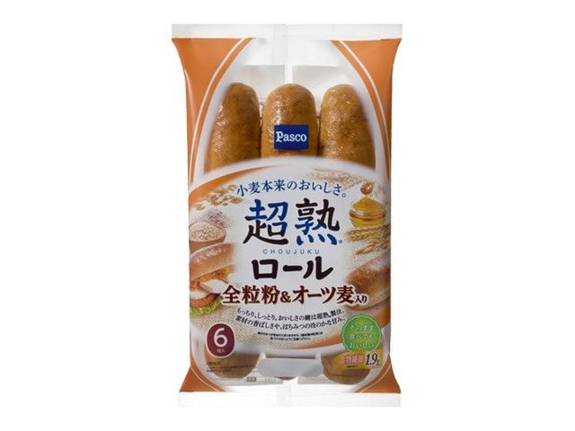 全粒粉とオーツ麦の香ばしさや、はちみつのほのかな甘みが感じられ、「超熟ロール」ならではのふんわり、しっとりとした食感を楽しめます。そのまま食べても、食材をはさんでアレンジしてもおいしくお召し上がりいただける、手軽で食べやすいロールパンです。6個入です。 【リニューアルポイント】 ・商品中の全粒粉量を18%UPしました。(敷島製パン従来品比)全粒粉量を増やしつつも、お客さまから評価される味わいである、雑穀の香ばしさとはちみつの甘さのバランスを維持しました。 ・「超熟製法」とドッグロール整形ならではの、やわらかくしっとりとした食感を高めました。 ・商品1個あたりの食物繊維が、1.7g→1.9gになりました。 ※国産小麦の小麦粉を19%使用しています(小麦粉中)。 ※はちみつが含まれておりますので、1歳未満の乳児には食べさせないようご注意ください。 カロリー:111kcal