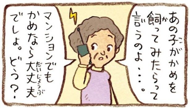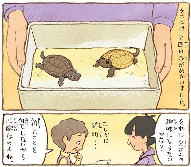 3. 「かめ飼ってみない?」息子の勧めで、おばあちゃんは2匹の子がめを飼うことに/おばあちゃんとかめ