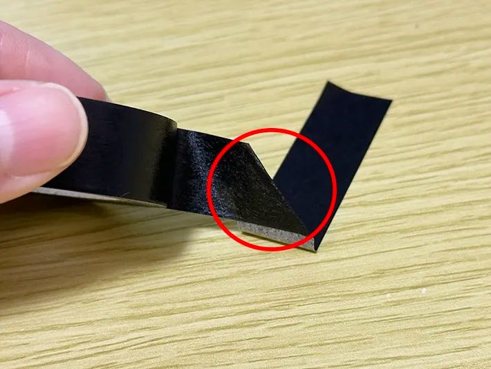 写真を見て、黒が表部分、グレーに見えるのが粘着部分です。