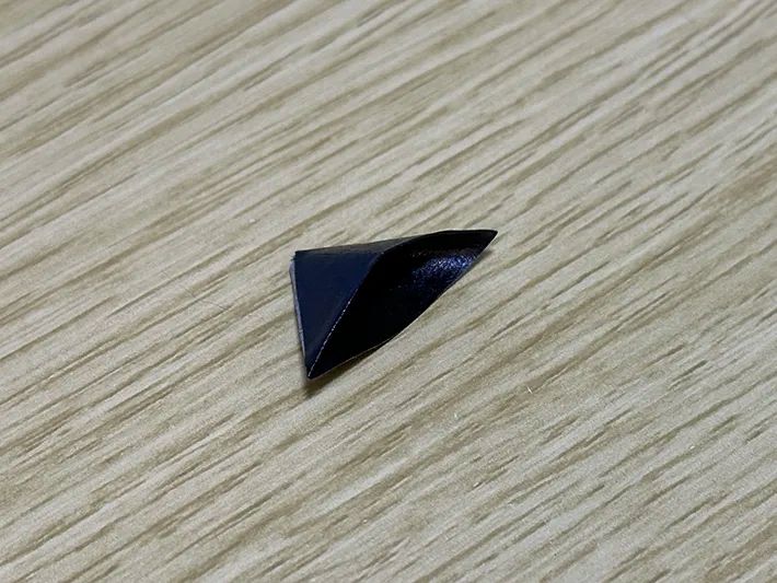 手順4でカットした粘着部分を、黒い三角形の背面に折ってください。
