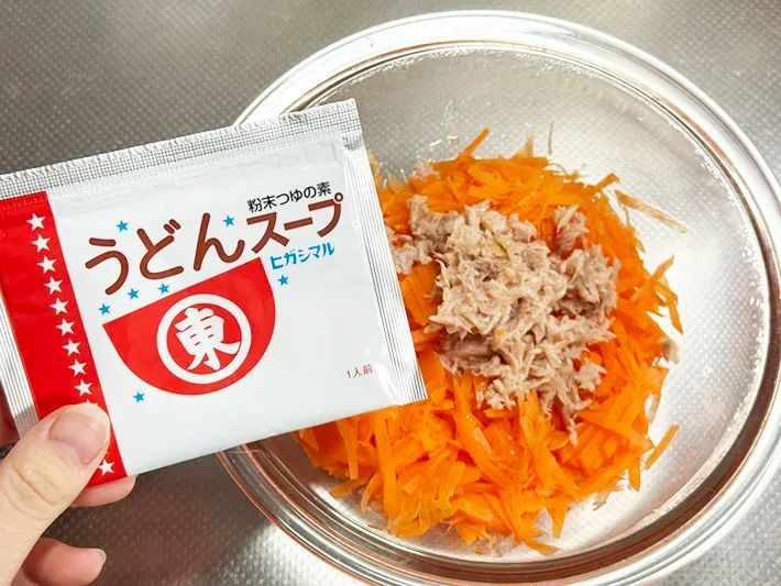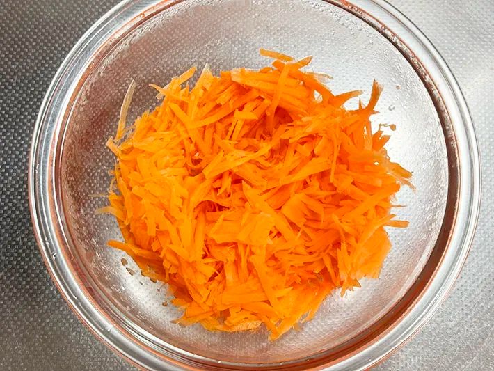 ボウルにAの調味料とニンジンを入れ、しっかりと和えてください。