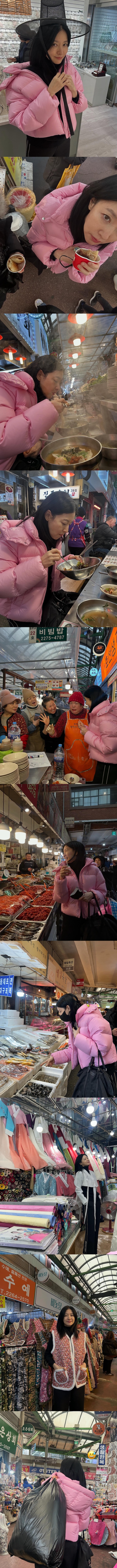公開された写真には、旧正月の連休に合わせて市場を訪れたイ・ヨンエの姿が収められている。鮮やかなピンク色のダウンジャケットを身にまとった彼女は、衣料品店や惣菜店などを巡った様子。
