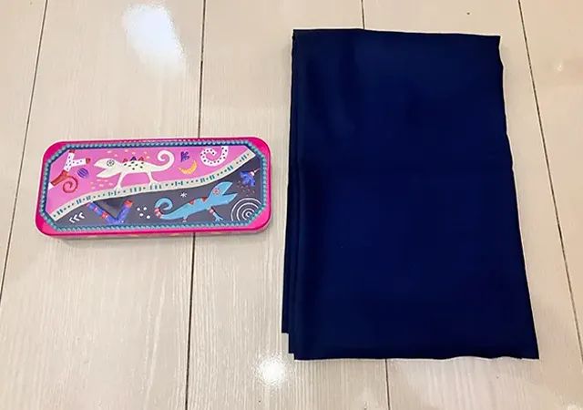 筆者は、約18cm×約7cmの箱に対して、自宅で余らせていた約90cm×約90cmの布を用意しましたよ。