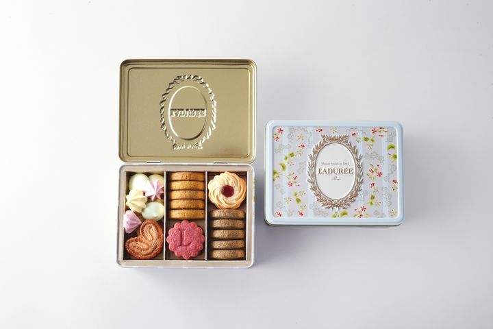 ラデュレから届いた春の新作情報に、クッキー好きなら見逃せないアイテムを発見! 淡いブルーのベースにピンクの⼩花柄、そしておなじみのエンボスされた⽴体的な王冠ロゴがあしらわれた華やかな缶ボックス。宝箱を手にしたかのように、オープンするときにはわくわくが止まらない。
