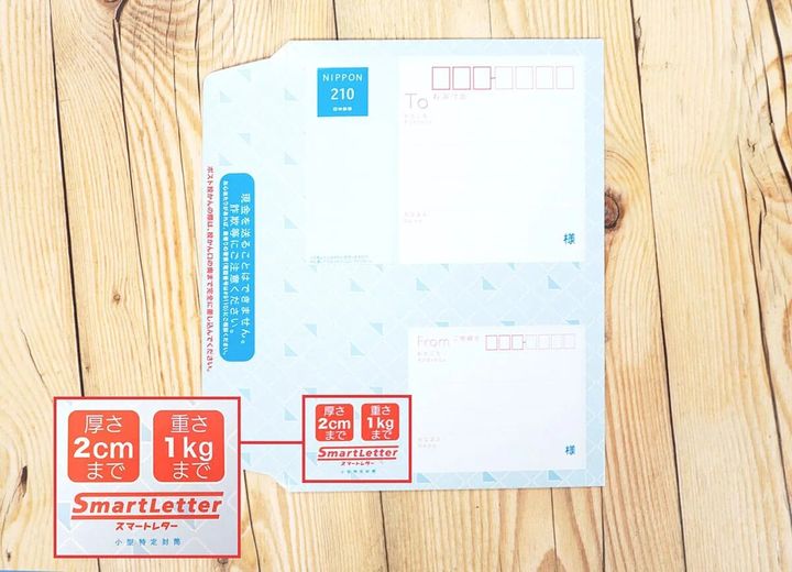 スマートレターは、厚さ2cm、重さ1kgまでなら日本全国一律210円で送れる日本郵便のサービスです。