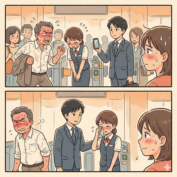 「タクシー代を払え、電車が遅れたせいだ」と駅員を責める客。だが、他の乗客の正論で表情が一変【短編小説】