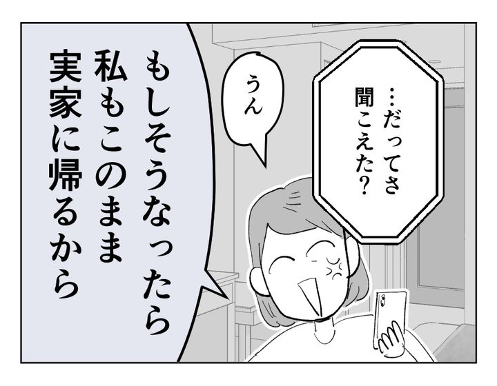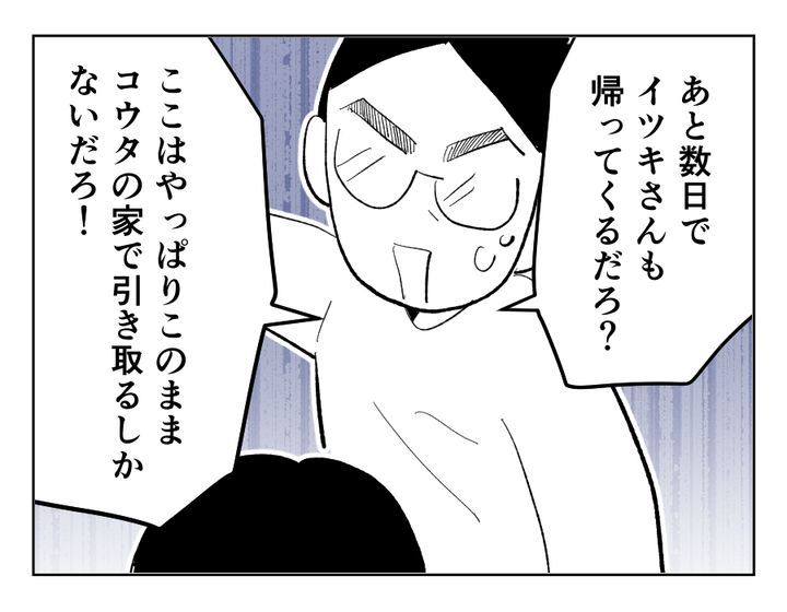 イツキさんはアラフィフのパート主婦。夫コウタさんが勝手に義母を2週間、自宅に泊めると約束したことで、現在ホテル暮らしをしています。わがまま義母と人任せのコウタさん、案の定ケンカが絶えず、義母は予定より早く帰ることに。しかし同居している義兄の家に戻るも義姉がおらず、「もう義母と一緒に暮らすのはイヤ」と実家へ帰ってしまっていました。コウタさんからSOSがくるもイツキさんは逃げの姿勢を貫き、コウタさんや義兄、義母は醜いケンカを始めました。