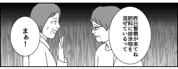 たまに昼間に「うんちのニオイがする」と思うこともありますが、夕方に息子さんが様子を見に来て、怒鳴り声が聞こえるので、肥料にする前に処分されているんじゃないかなと思います。
