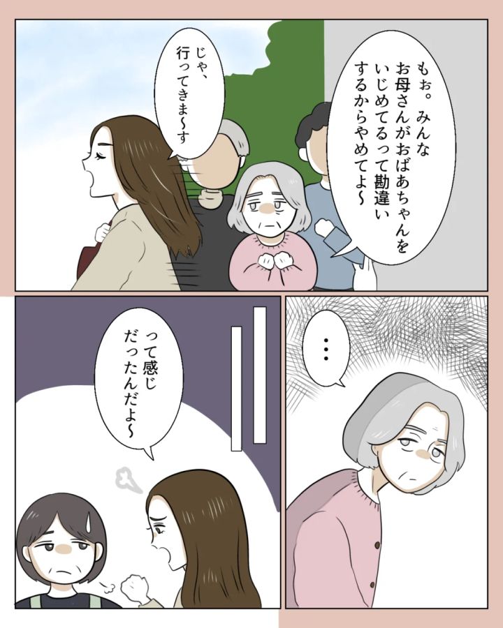 真矢は「もぉ。みんなお母さんがおばあちゃんをいじめてるって勘違いするからやめてよ~」と言ってご近所さんに私が悪く思われないように言ってくれたそうです。そう、お義母さんはわざと誤解されるような言い方をして、まるで私が鬼嫁かのように周りに話すのです。こんなことが日常茶飯事でいちいち訂正するのも面倒になっている私ですが、自分のことのように怒ってくれる真矢の気持ちは嬉しいです。
