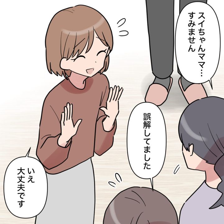「スイちゃんママ、すみません」「誤解してました」田中さんの嘘を信じてしまいそうになったことを悔やんだのか、保護者たちは申し訳なさそうに頭を下げました。私は笑顔で「いえ、大丈夫です」と答えます。あの場で庇ってくれた・・・それだけで十分すぎるほど嬉しかったです。