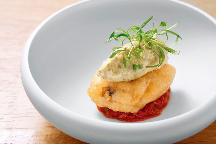 また一皿一皿を印象づけるのが季節のソース。ベニエ生地で揚げた蛤には、春に旬を迎えるふきのとうのタルタルソースを。心地よい店内とモダンな料理を求め、何度でも足を運びたくなります。